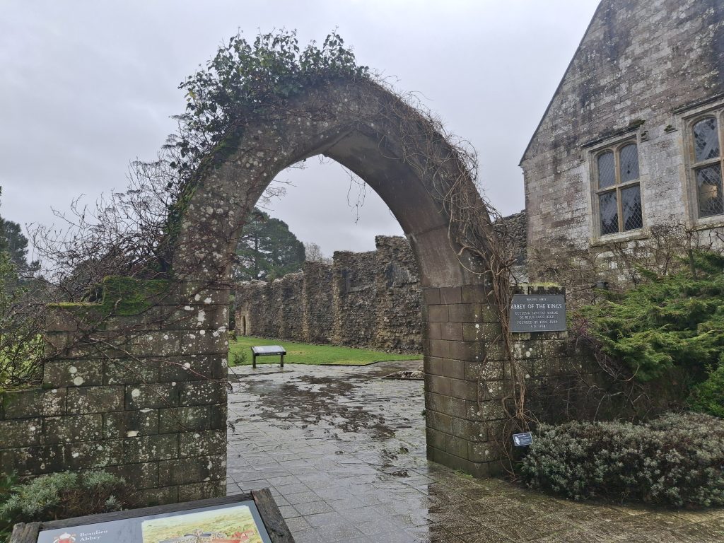 Inzwischen hatte der Regen richtig eingesetzt, also ging ich zum Mittagessen ins Restaurant – Pizza und ein Stück Kuchen – bevor ich mir die Überreste der Beaulieu Abbey ansah.